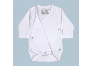 A crossed or open one piece is recommended (in long or short sleeve) for newborns. Since it is completely open, this allows you to dress your baby as if it were a jacket that wraps the entire body, thus avoiding placing it over the baby´s head, since this is so delicate during the first days of life.