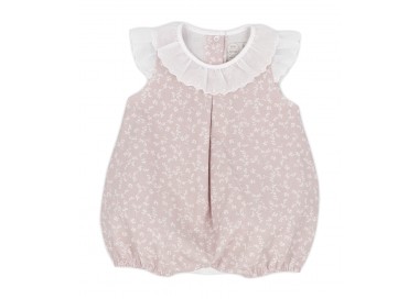 Bonito pelele de verano para niñas en rosa maquillaje muy a la moda este temporada además de ser un tono muy elegante. Además del bonito estampado de flores liberty, este pelele combina la batista bordada en el cuello y mangas que lo hacen una prenda muy especial y elegante para cualquier ocasión especial o el fin de semana.