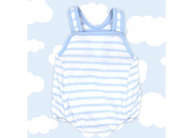 Peto de verano para bebé confeccionado en tejido de rayas en punto 100% algodón, perfecto para vestir a tu pequeño con tejidos naturales que permiten que su piel transpire.