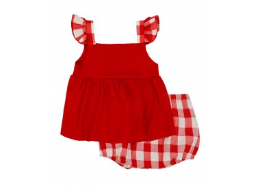 Conjunto de camiseta y pololo para bebé compuesto por camiseta con tirantes de volantes y pololo a juego.