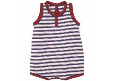 Pelele de rayas estilo marinero disponible en color rojo y azul marino. Este pelele corto es perfecto para ir a la playa o vestir cómodo a tu bebé en el día a día.